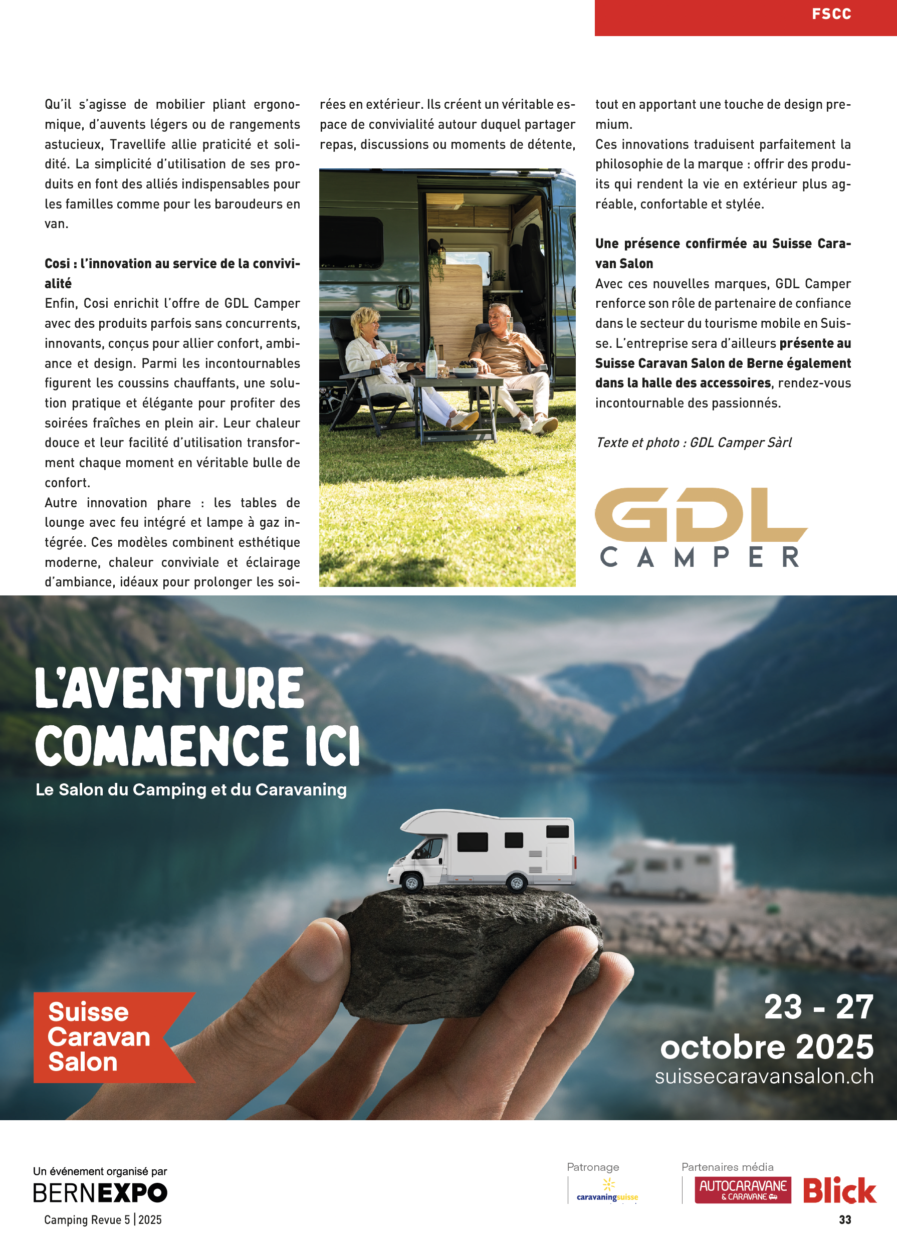 Reportage publié dans le magazine de la Fédération Suisse de Camping et Caravaning